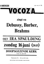 Oprichting van het Vocaal Ensemble Vocoza door jonge mensen die in het Obrechtkerkkoor zongen. Dirigent: Frank Hameleers (na een korte periode door zijn vader Paul Hameleers). Concerten beperkten zich tot 3 à 4 keer per jaar meewerken aan missen in de Obrechtkerk. |